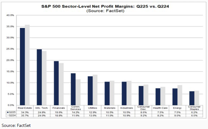 그러나 이는 2024 년 1 분기(5.8%) 이후 가장 낮은 성장률이며, 6.1%의 Earning Surprise 폭은 5 년 평균(9.1%)과 10 년 평균(6.9%)을 모두 하회했다. 이는 기업들이 수익성을 유지하고 있으나 의미 있는 성장 가속에는 점점 더 큰 압박을 받고 있음을 시사한다.