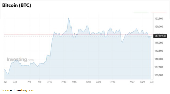 앞으로의 규제 방향에 명확성을 부여했다. 코인베이스(Coinbase)와 로빈후드(Robinhood) 주가는 7 월에 사상 최고치를 경신하며 투자자들의 낙관론을 반영했다. 이번 돌파구는 기관투자 유입을 촉진하고 비트코인 모멘텀을 강화하며, 새로운 시대의 포트폴리오 자산 배분 구조를 재편하고 있다.