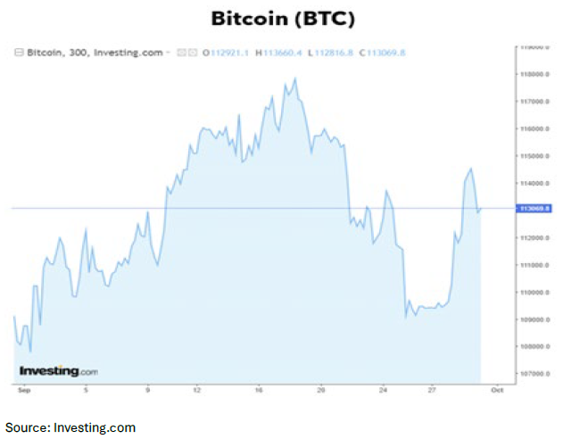 비트코인은 9월 내내 변동성 있는 흐름을 보였다. 한때 11만7천 달러를 돌파했으나 이후 후퇴해 9월 말에는 11만3천 달러 수준으로 내려왔다. 거시 불확실성과 차익 실현 매물이 가격을 끌어내렸다. 다만 10만5천 달러 이상에서 버티며, 이는 대규모 매도세가 아닌 신중한 투자자 태도를 반영했다. 시장은 경제 데이터와 금리 전망 변화를 소화하는 과정에 있었다.