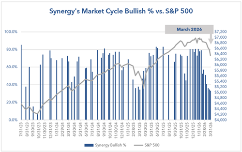 3월 내내 변동성이 높은 수준을 유지했다. 이는 지정학적 불확실성과 시장 불안이 고조됐음을 반영한다. 일반적으로 높은 변동성의 지속은 주식시장에 약세 신호로 간주되는 만큼, 현재 시장환경이 그만큼 취약해져 있음을 시사한다.